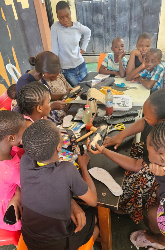 Two external trainers were invited to facilitate the training. They introduced the children to two main areas of skill acquisition: Shoe Making and Resin Art. In the shoe making session, the children were taught step by step how to make different types of slippers , including palm slippers of various sizes. For Resin Art, the children were introduced to the art of designing and crafting using resin. They learned how to create beautiful accessories such as earrings and key holders. The summer training was not only beneficial to the children but also added to the existing knowledge base of Tabitha Maison Enterprise.