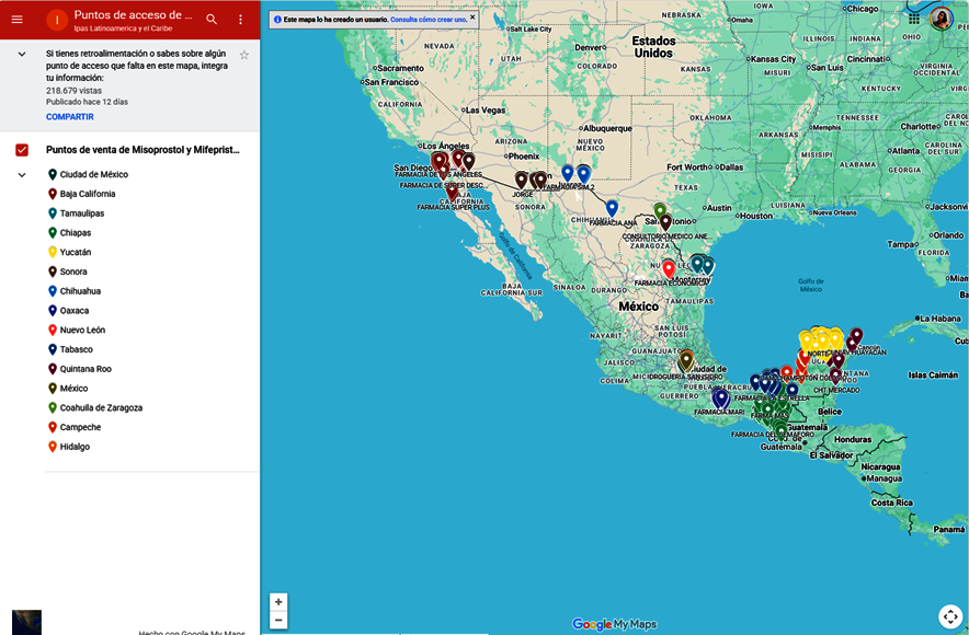 We have created an Abortion Medication Access Map—a collective tool built together with organizations, grassroots groups, and users—that identifies places across different regions of Mexico where people can access misoprostol, or misoprostol and mifepristone.