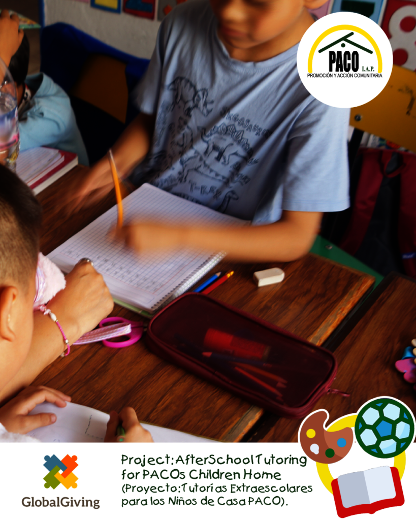 El proyecto “AfterSchool Tutoring for PACOs Children (Tutorías Extraescolares para los Niños de Casa PACO)” tiene por objetivo realizar actividades extracurriculares que les permitan reforzar lo aprendido en clase, realizar sus tareas y desarrollar más habilidades para incrementar sus oportunidades futuras.