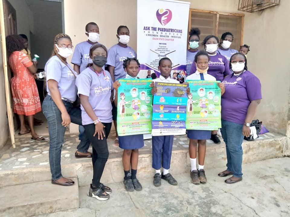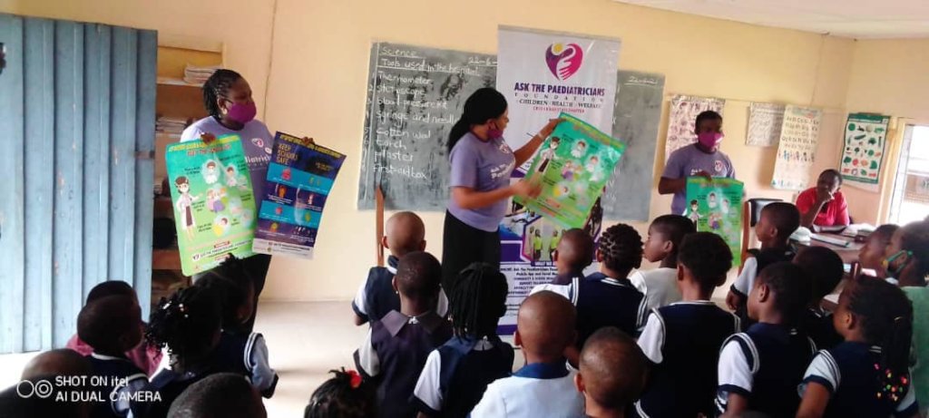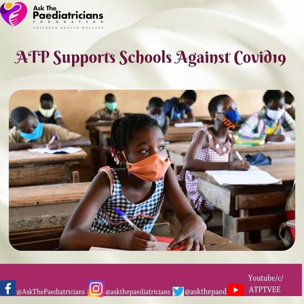 Ask The Paediatricians Foundation has continued to be active despite the ongoing Covid19 pandemic. We continued and rounded off support for our schools in keeping them safe from Covid19 which we started in June 2021. We have continued the ATP Supports Schools Against Covid19 Outreaches till September 2021 in more than 40 States and Zonal Chapters including Ghana our latest ATP Chapter and the first country chapter outside Nigeria. Through this project we have reached close to 500 schools throughout Nigeria and Ghana, donated more than 1500 500ml handsanitizers, more than 1500 cartons of Facemaks (each containing 50 units of facemasks), 4,000 large posters to remind school communities of the Covid19 prevention messages and lot of other hygiene materials. We are looking forward to our post-intervention impact survery at the end of the year to see how our support has made a dfference in all the schools visited. Most of the schools were very full of gratitide to Ask The Paediatricians Foundation for their support. Some of the videos from the events are available on our Instagram and Facebook pages.