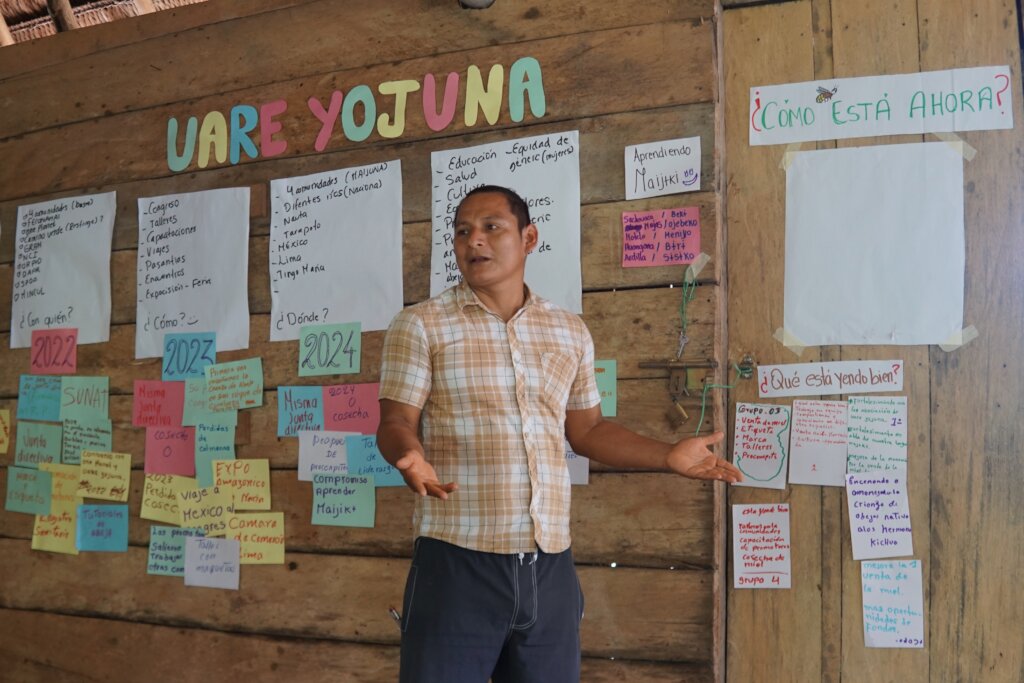 For beekeepers already practiced in the technical aspects of hive management and honey harvesting, these workshops focused heavily on leadership and community facilitation. The most inspiring aspect of these workshops is that the teaching was led by our very first class of project graduates! Our veteran promoters helped the new cohort gain confidence in public speaking and engagement practices, strengthening their interpersonal tools to support new capacity builders through the challenges of starting to work with native bees. By prioritizing these peer-to-peer skills alongside technical training, we are building a resilient network of advocates who can protect the Amazon’s pollinators for years to come.