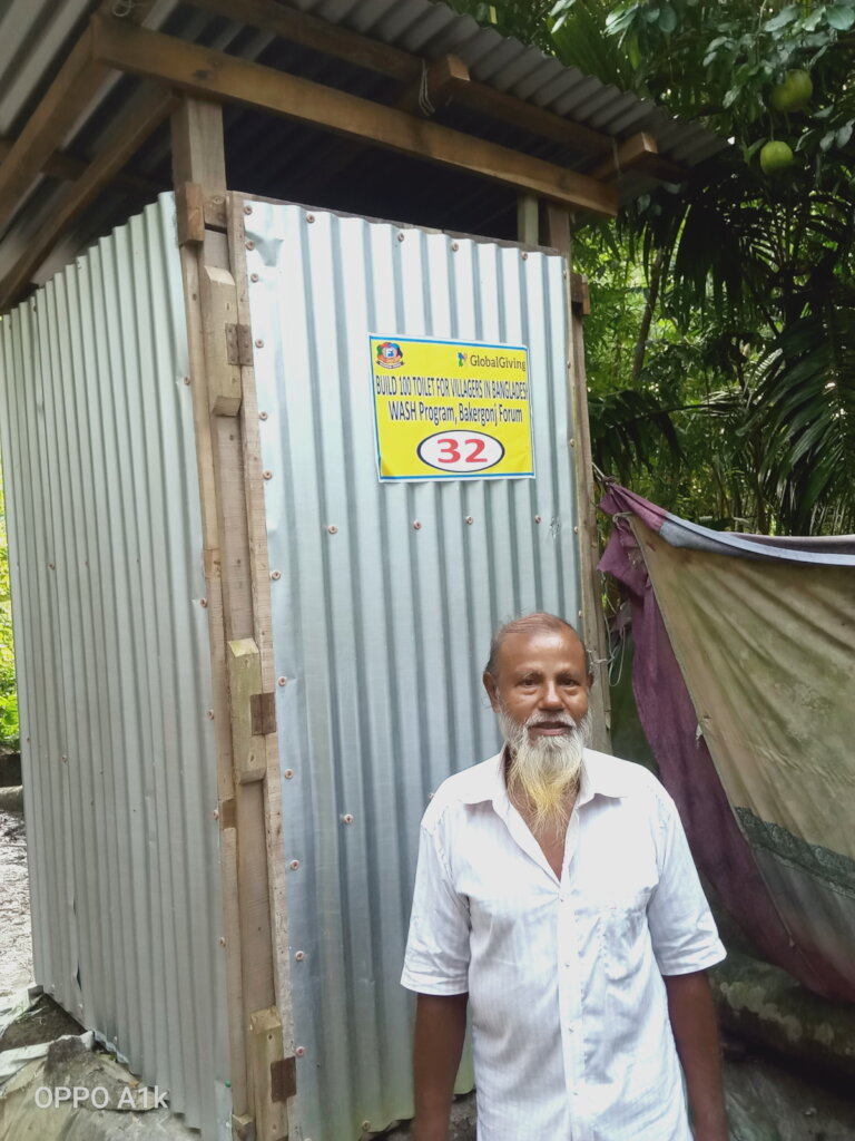 b. Toilet Provided to the Beneficiaries 52 nos. World bank designed sanitary Latrine for  03 Madrasa,03 Local Mosque & 46 Families.Accordingly 375 Persons of Male, female,olders,Childrens & Disable people using sanitary Latrinrine in these community of Bakergonj upazila under Barisal District.