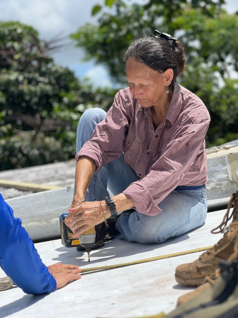 Once the repairs were completed, Yaki’s involvement didn’t end. Inspired by PRoTechos’ mission and moved by a deep desire to give back, she joined our apprenticeship program. Today, she volunteers her time to help rebuild roofs for others in her community; transforming her own experience of recovery into a catalyst for broader impact.
