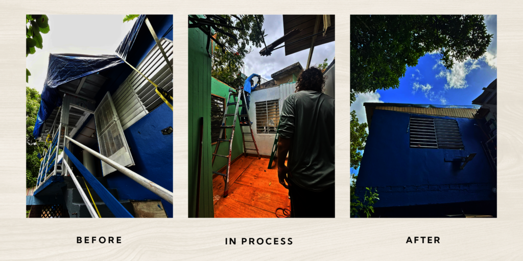 Your support helps make homes safe again for families like Esther’s. Every contribution directly helps us rebuild roofs, restore stability, and bring peace of mind to caregivers, elders, and vulnerable households across Puerto Rico. Thank you for continuing to make this work possible.