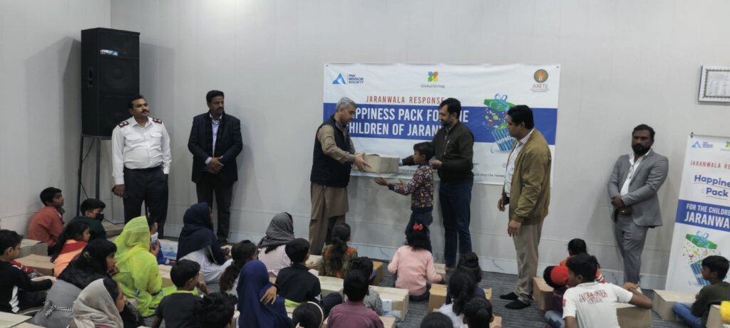 GlobalGiving funds USD2200 were utilized to bring smiles to the school going children and for this purpose PMS designed Happiness packs which were distributed among the 150 children in Jaranwala. An Appeal was launched by PMS after conducting the detailed need assessment of the families directly affected in the incident. After having a detailed discussion with the local pastors, it was finalized that children are the most vulnerable segment their needs should be addressed on priority. The Children were identified by the Church pastors of 5 different denominations directly affected in the incident. The Distribution was organized at Presbyterian Church Jaranwala on 30 November 2023. Mr. Nafar Iqbal (Social Welfare Officer), Jaranwala was the Chief Guest. The Happiness Packs Included: