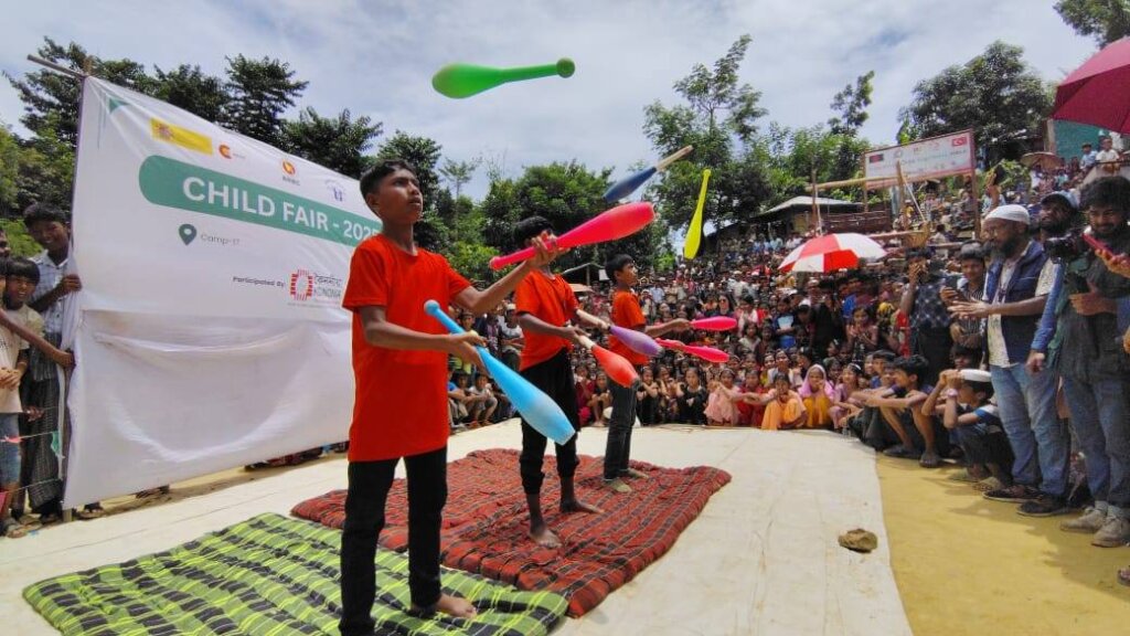 This month, we are also hosting “The Flying Seagull Project” https://www.theflyingseagullproject.com/ in the Rohingya refugee camps and Dhaka slums in partnership with KOINONIA and Flourish Foundation. The Flying Seagull Project would be making shows and conduct workshops both for and with our young artists. These joint performances and workshops strengthen the capacity and confidence of our teams, working alongside some of the best international artists.