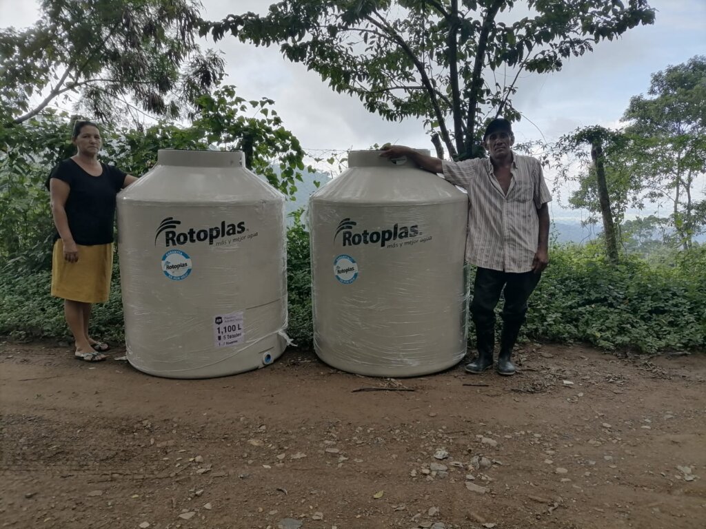 At least 6 farming families in the dry corridor in southern Honduras have been supported with plastic tanks for rainwater storage; these families suffer from water shortages. With these water storage systems they can conserve rainwater for domestic use and for irrigation of backyard crops.