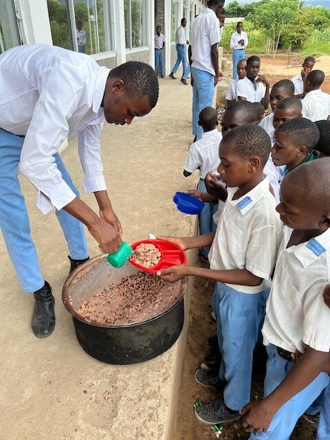 The harvest involved picking the maize cobs from the plants, transporting them to the schools, manually removing kernels, and drying them in classrooms before storage in large bags. New seeds have also been prepared, following a video in which the Norwegian farming experts describe the procedure.