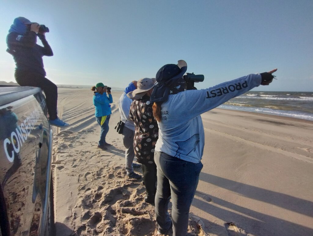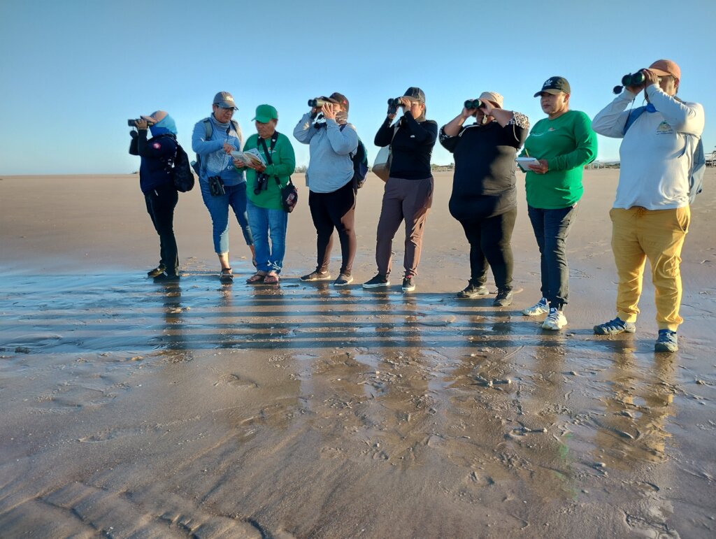 At the beginning of July, we launched our coastal bird monitoring, made possible by the “Program for the Protection and Restoration of Ecosystems and Priority Species” (PROREST) from the National Commission of Natural Protected Areas. We carry out one to two visits per month to six sites spread across nearly 60 km of the Sonoran coast within the Upper Gulf of California and Colorado River Delta Biosphere Reserve. In each zone, we walk a 4 to 6 km transect, first recording environmental variables such as wind speed and direction, temperature, wave conditions, tide level, and cloud cover. Then we proceed to observe, identify, and record all birds present, and at the end of the day, we tally the totals per species.
