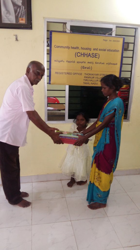 One of our beneficiary said " I am leper cured disable person. i lost my 5 fingers in my right hand and 4 fingers in legs. I am unable to work. No one allow me to go near to them. But CHHASE is helping me to keep me without starvation. They are providing me food groceries, clothes and medicines. Now i feel, i am secure and safe. Thank you for helping me"