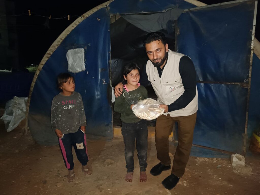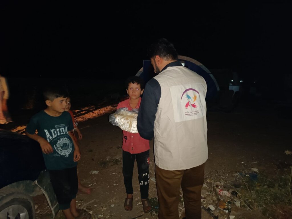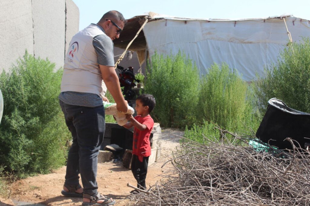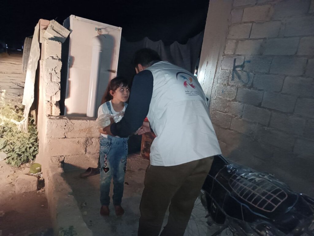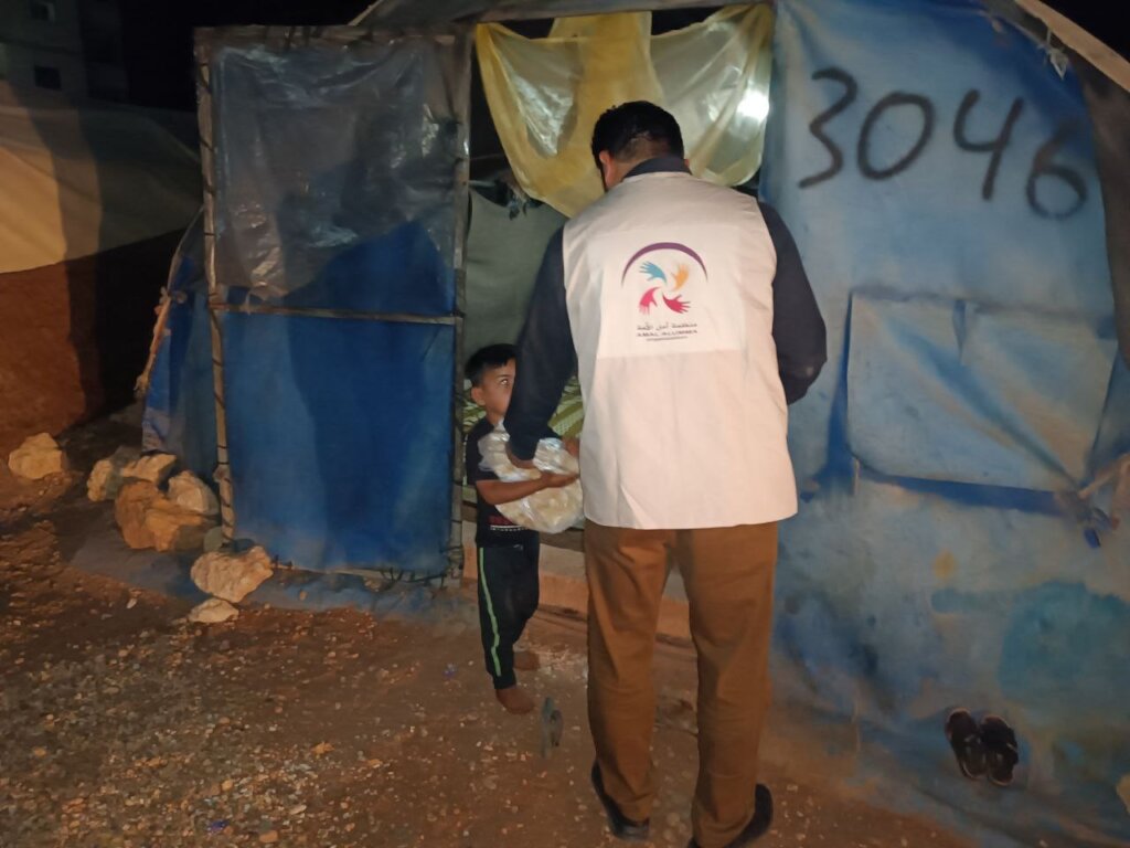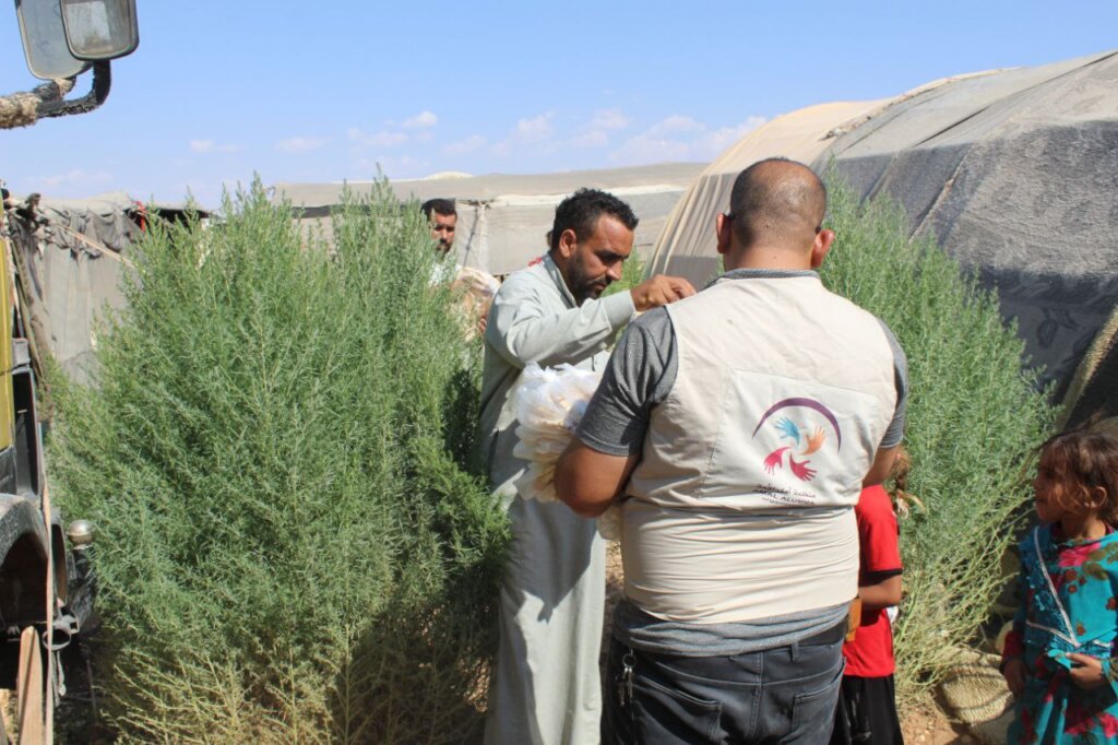 Food is one of the most basic needs that Syrian refugees struggle to obtain, and providing it to the displaced on a monthly basis helps improve their difficult conditions in the camps in Syria. Thanks to your generous donations, we were able to distribute food baskets to 65 families suffering from an acute shortage of food supplies, as these families live in random camps in the countryside of the city of Soran, and these camps are not covered by any international . Your generous donations have contributed to securing basic supplies for these families, such as rice, sugar, oil, tea, bulgur, lentils, and pasta.