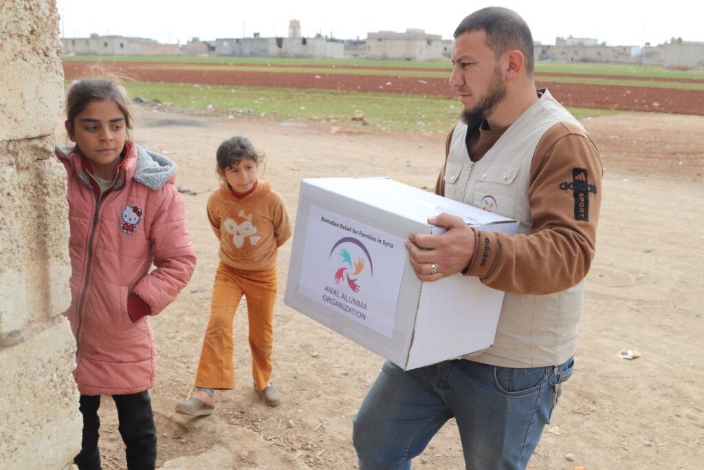 Today, we would like to share with you a moment of hope that you were a part of—distributing a food basket to the family of Lama and Shahd, two little girls living with their mother on the outskirts of Suran, northern Syria.