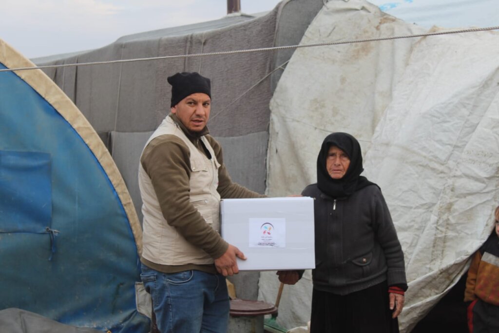 Today, we would like to share with you the moments of distributing a food basket to Mrs. Zuleikha, an elderly woman who lives with her deceased son's family in the Tel al-Daraj camp in northern Syria. Mrs. Zuleikha has endured great hardship after losing her son, Hamoud, in the tragic events in Syria, leaving her in a difficult situation filled with sorrow and concern.
