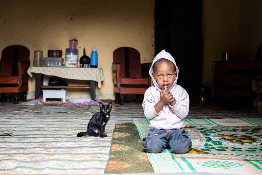 Melaku says, “I want to help eliminate trachoma. I teach my community, ‘Look at me and take care of your eyes.’ I tell my children to wash their faces every morning and make sure they take the medicine needed.”