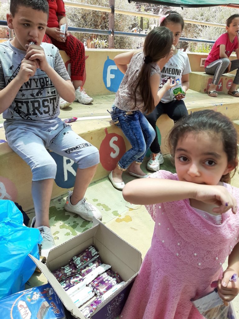 Where children were danced to songs aimed at teaching them to sterilize hands, and healthy fruits were distributed to the children in order to encourage them to eat healthy. The presence of a clown for the children, which increased their interaction. In addition to teaching them some motor and sensory games.