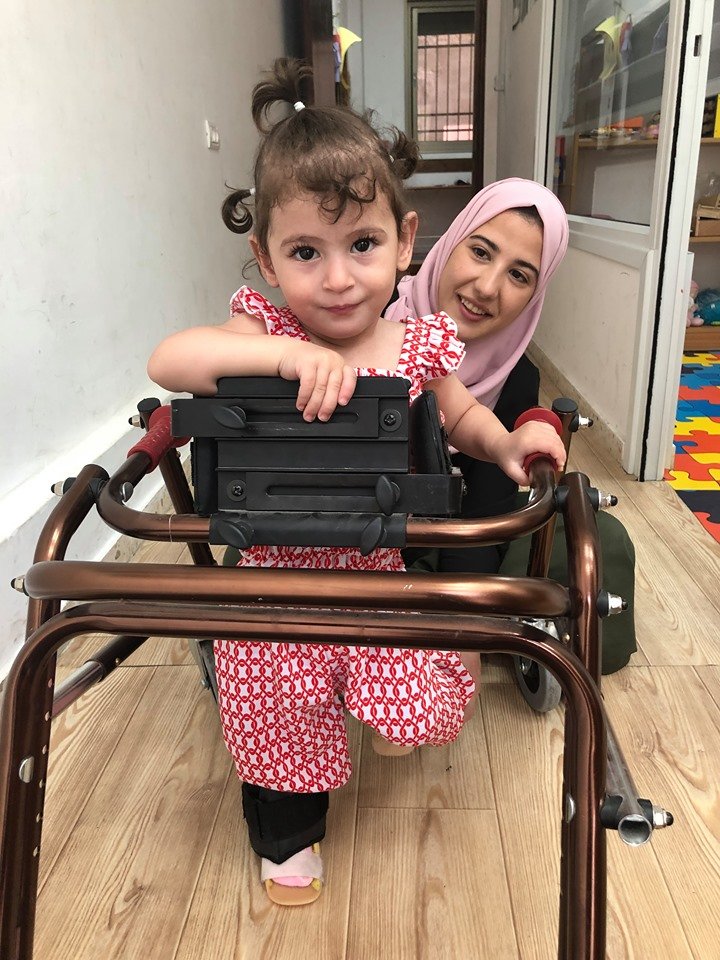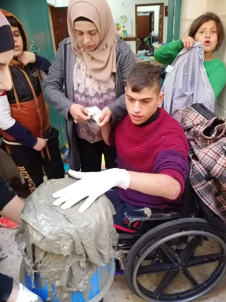 1. Physiotherapy and rehabilitation program: which continued to provide service to twenty-two people, including 12 children between the ages of 5 to 16 years (5 females, 7 males). One child, 3 years old, suffers from a sensory disease that prevents the development of joints The child was unable to stand and walk alone according to the natural development of children. After intensive sessions, the child is able to walk alone. Two new cases were also evaluated. Who suffer from cerebral palsy.