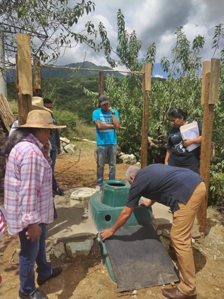 That is why, through outreach to municipalities, we have supported the process of reconciliation between people and their environment. This outreach is based on diverse actions and strategies that have different levels of engagement and support (training, construction, consulting), but are all guided by four main principles: territorial regeneration, alternative technologies, integrated water management and sustainable production. For example, we support municipalities like Villa de Zaachila by training students and staff from educational centers on the importance of rainwater harvesting, storage, and use, as well as the installation of rainwater harvesting and storage systems. In San Andrés Ixtlahuaca we advised on the construction of gabions, dry toilets, a greenhouse, rainwater harvesting ponds and infiltration trenches. In Teotitlán del Valle we supported the reforestation of 1.5 hectares and, with the community's help, designed an ecological park. In San Gabriel and San Miguel Guelache, we advised on the construction of three fish ponds and dry toilets. In San Andrés Huayapan we proposed a comprehensive project for the recovery and regeneration of the basins surrounding the community.