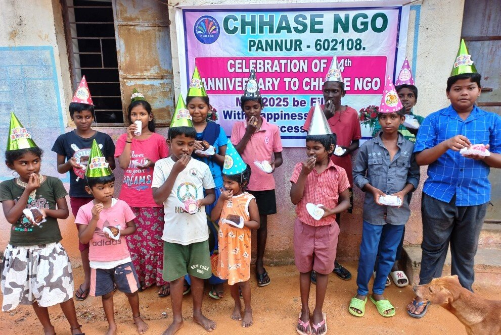 CHHASE has entered its 24th Anniversary. The volunteers, staff and our beneficiaries of CHHASE NGO celebrated this anniversary with under privileged, orphan and slum children. Orphan children asked to cut cake in the celebration. CHHASE organized this celebration in after school education Centers, old age centers and in CHHASE VTC, a school for vocational training Centre for women managed by CHHASE.