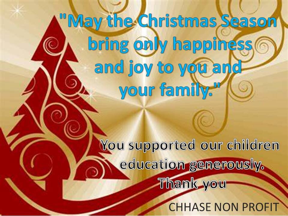 “Happy new year” to you. CHHASE, staff, our children, beneficiaries and especially our neglected women are wishing you that this year will be a most successful year for you with good health, wealth and success in all your plans. We remember you in our prayers. May all live happy and peacefully.