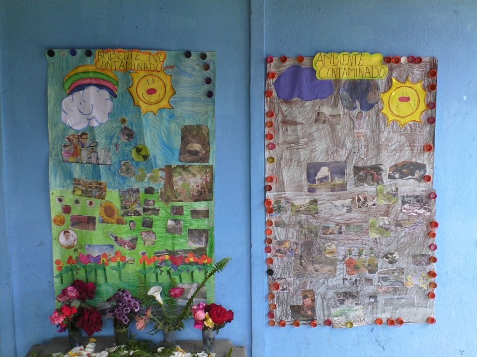This year, the students saved some of the trash and along with some educational materials of the school, they made murals to represent different problems with throwing trash in the streets. Then, we invited all the parents to come in and look at the murels and recieve a presentation from the whole class on what the problem is and how recycling improves the environment.