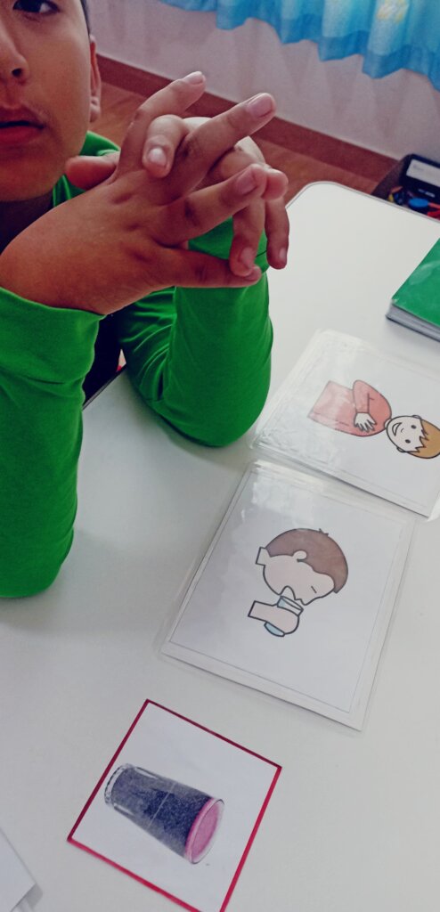 Another case is Zaid, diagnosed with spastic hemiplegia. In his process, the use of pictograms has been key to working on behavior regulation, frustration management, and emotional recognition. He has also made progress in identifying social norms such as greeting, saying thank you, asking for permission, and saying “please.”