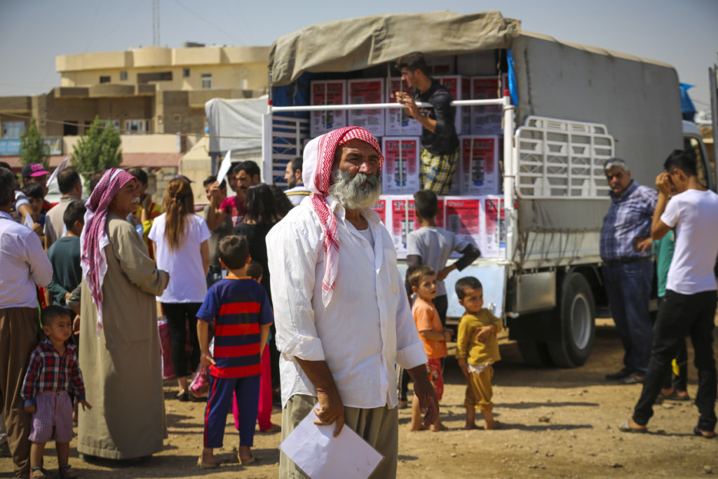 DOHUK, KURDISH REGION OF IRAQ – As the sun makes its way over the horizon, in a makeshift camp thousands of refugees and internally displace people (IDPs) are lining up to receive rare and highly prized winter supplies. Though it is still summer, the trauma of the cold and snow soon to come is fresh on their minds, and serves as a bitter reminder of yet another winter that they will have to spend in tents trying to flee torture, slavery, and unspeakable horrors at the hands of ISIS. Despite the blaring heat and sweating profusely, the heads of households all calmly line up with their ID cards, profusely thanking the IsraAID aid workers who against all odds have come all the way from Israel to help them.