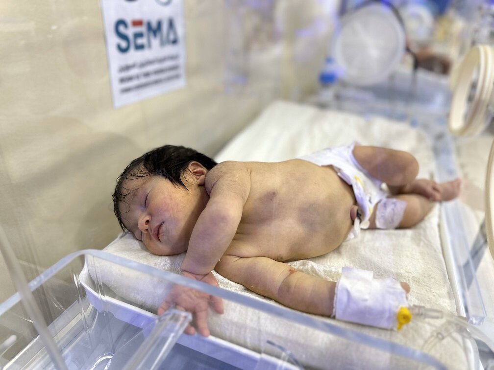 Nine months of waiting and longing ended with the birth of this beautiful baby girl, but tears of joy turned into tears of sadness after she suffered a severe respiratory ailment that seriously threatened her life. As a result, she was transferred to one of SEMA hospitals.