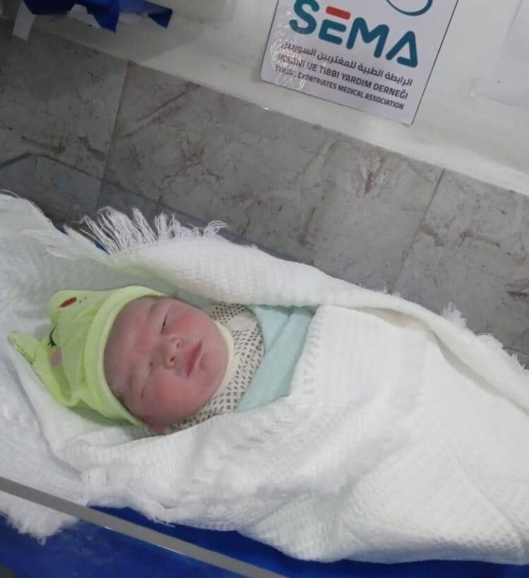 The baby Qassem saw the light this week in a SEMA hospital in northern Syria, after his mother went to the hospital in urgent situation and was about to give birth, the medical staff monitored her for hours and the decision was made to perform a caesarean section to preserve the health of the mother and her fetus.