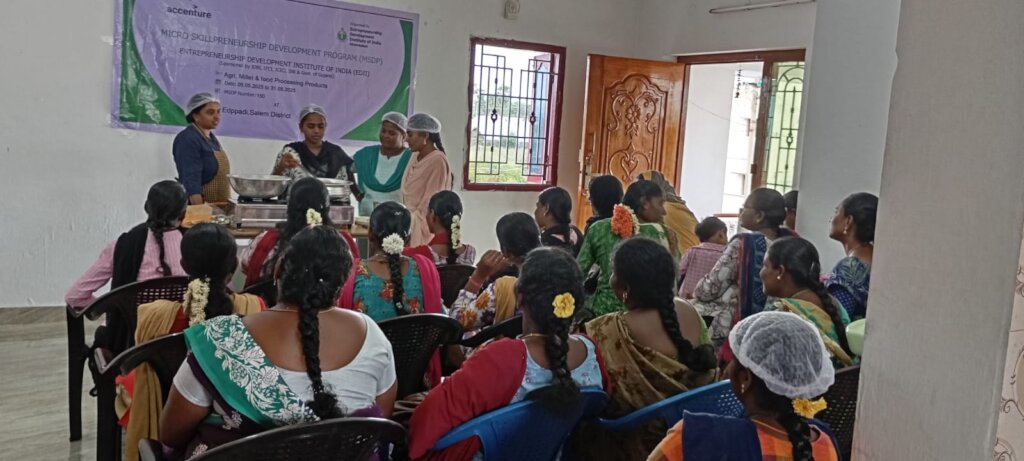 The training, held from 1st May to 30th May 2025, was facilitated by a certified expert trainer from the Entrepreneurship Development and Innovation Institute (EDII). The program focused on the practical preparation of a variety of snacks and nutritious beverages using minor millets such as Ragi (Finger Millet), Jowar (Sorghum), Kambu (Pearl Millet), and other locally available millets.