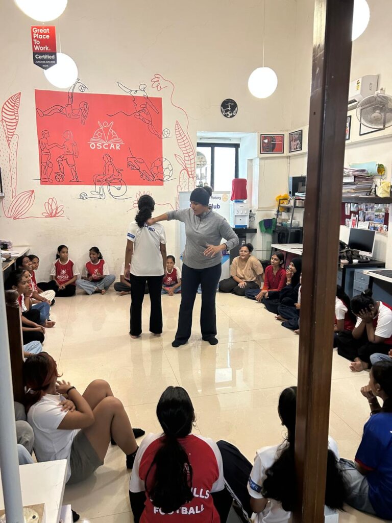 Misbah grew up in an underserved community in Mumbai, where many girls face limited access to education and deep-rooted taboos around menstrual health. Like countless adolescents in similar settings, she was surrounded by barriers that often prevent girls from speaking openly, staying in school or stepping into leadership roles. Her journey with OSCAR Foundation began through the Life Skills through Football programme, where she found not only a space to play, but a platform to grow.