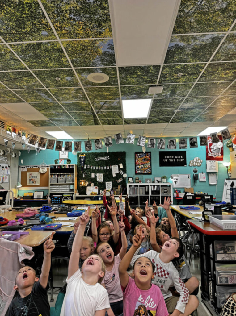“Students have learned that when they feel overwhelmed, distracted, or in need of a quiet moment, they don’t have to leave their seats—they can simply look up. The calming canopy can be seen from every inch of our classroom and has been so helpful for students as well as myself. This small action of simply taking a moment for ourselves has helped many become more self-aware and grounded. Paired with our social-emotional learning (SEL) strategies, the ceiling offers a gentle pause for reflection, helping students identify, understand, and regulate their emotions independently.”