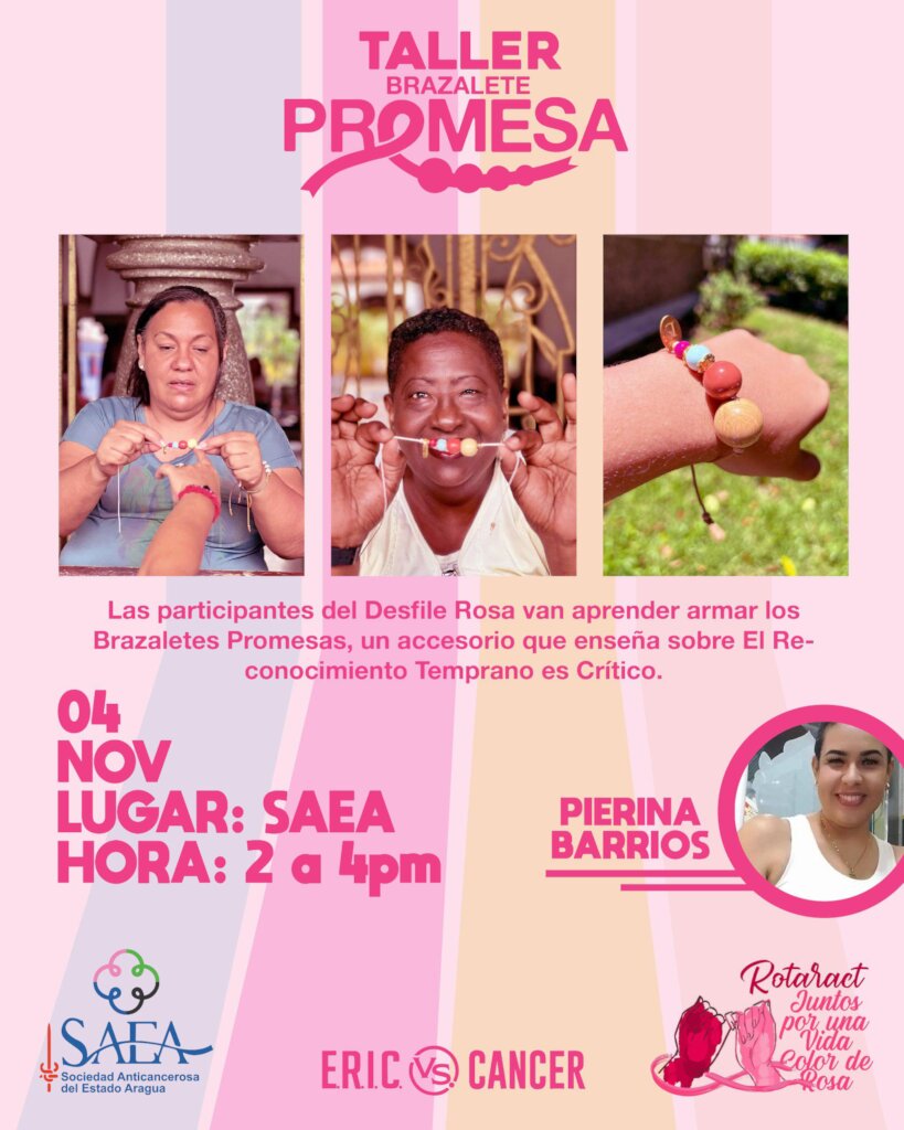 Then we focused on connecting with artisans to join the cause to spread the E.R.I.C. message. This led to the creation of a workshop on the art of assembling Promise Bracelets, which we held at the ISENA and SAEA medical institutions respectively. It was aimed at women survivors, and it was an impactful experience because they assembled their own bracelets and now replicate the message of Early Recognition.