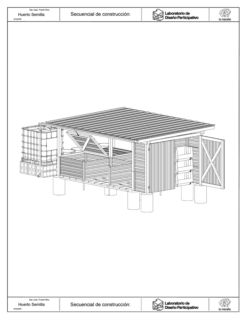 We had previously met with the amazing folks who upkeep Huerto Semilla and held participatory design workshops where they voiced concerns about their garden and resulted in determining what challenges they wanted to resolve. The collective decision was to work with La Maraña to improve their composting system. Their ideas included the need to create a compost space that could serve multiple purposes. The compost area needed to have storage space, a water cistern and it would also need to align with the physical space and vegetation around it.