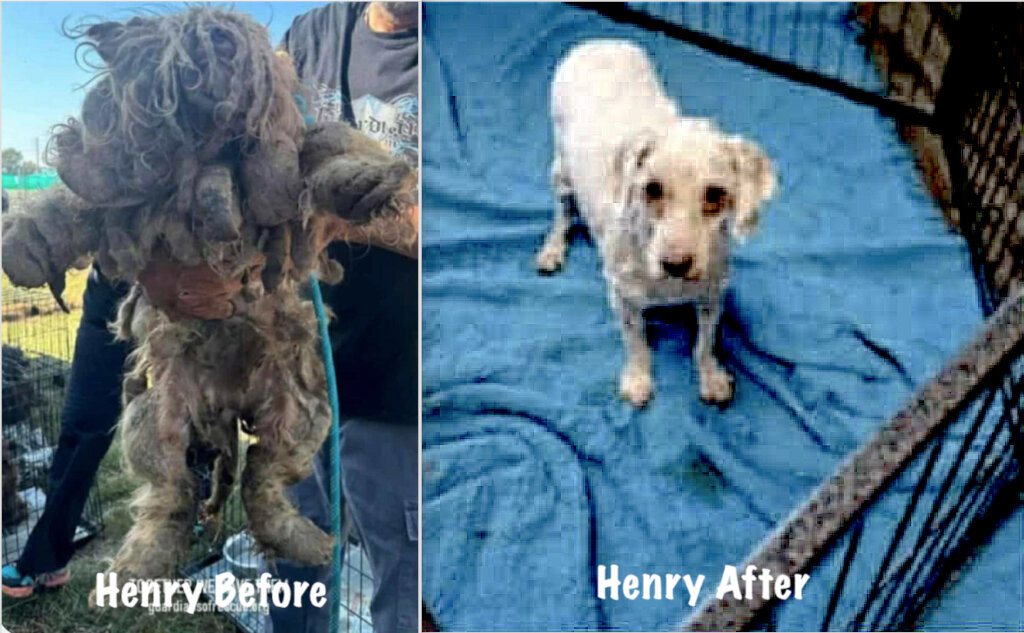When we saved Henry from a puppy mill hell-hole in Colbert County, Alabama, he barely looked like a dog. Once freed from his prison of hair, it turned out there was someone under there after all!