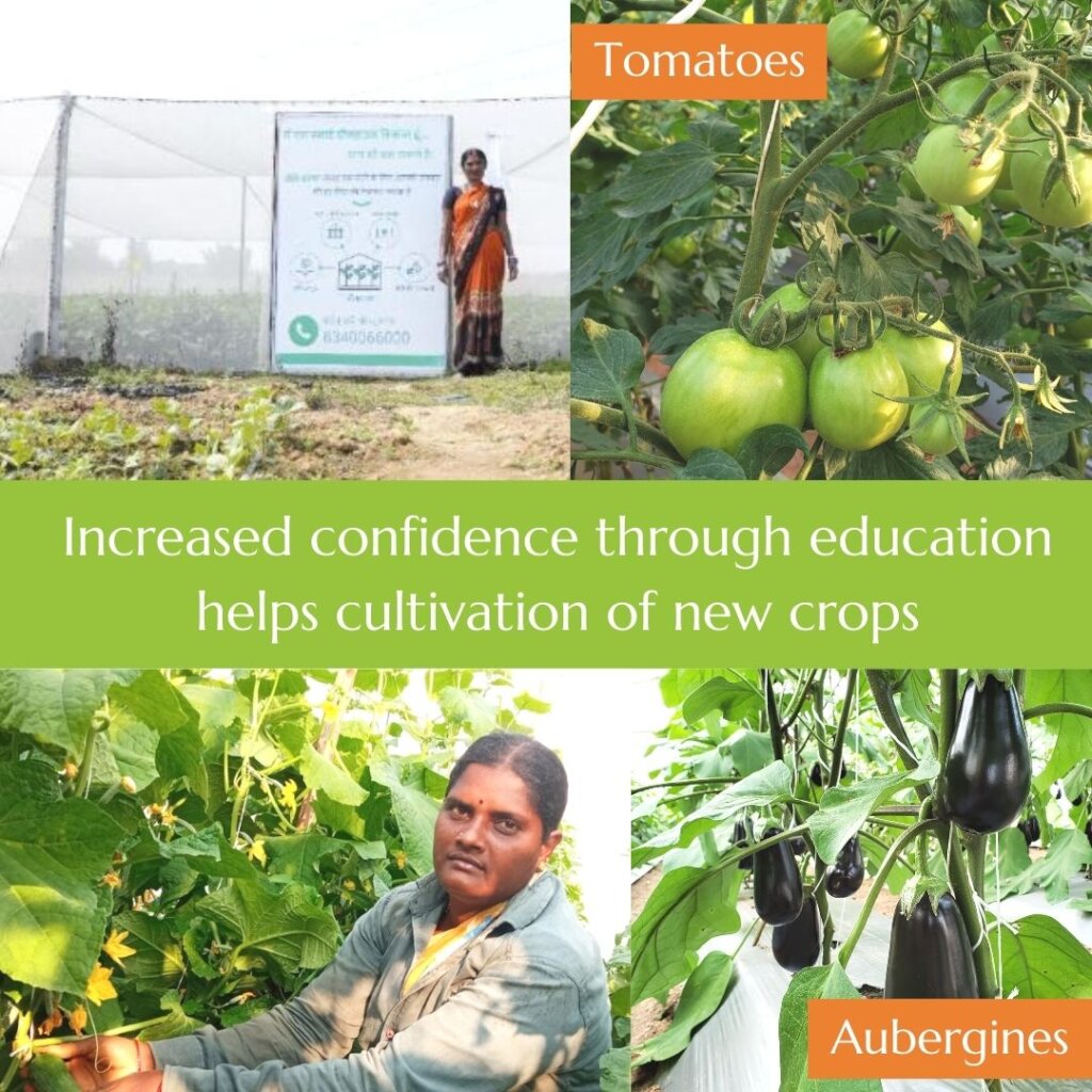 Since, Sumita also learnt about the diversity of crops that she can grow in her greenhouse and throughout the year, Sumita has also benefitted by growing crops such as capsicums. With additional help from the on-site agronomy advisors that our friends at Kheyti organise for these farmers, Sumita is also seeing significant improvements to her farming while also improving the soil fertility, nutritional levels of the food she grows, using 10 times less water and with a much more sustainable level of income.