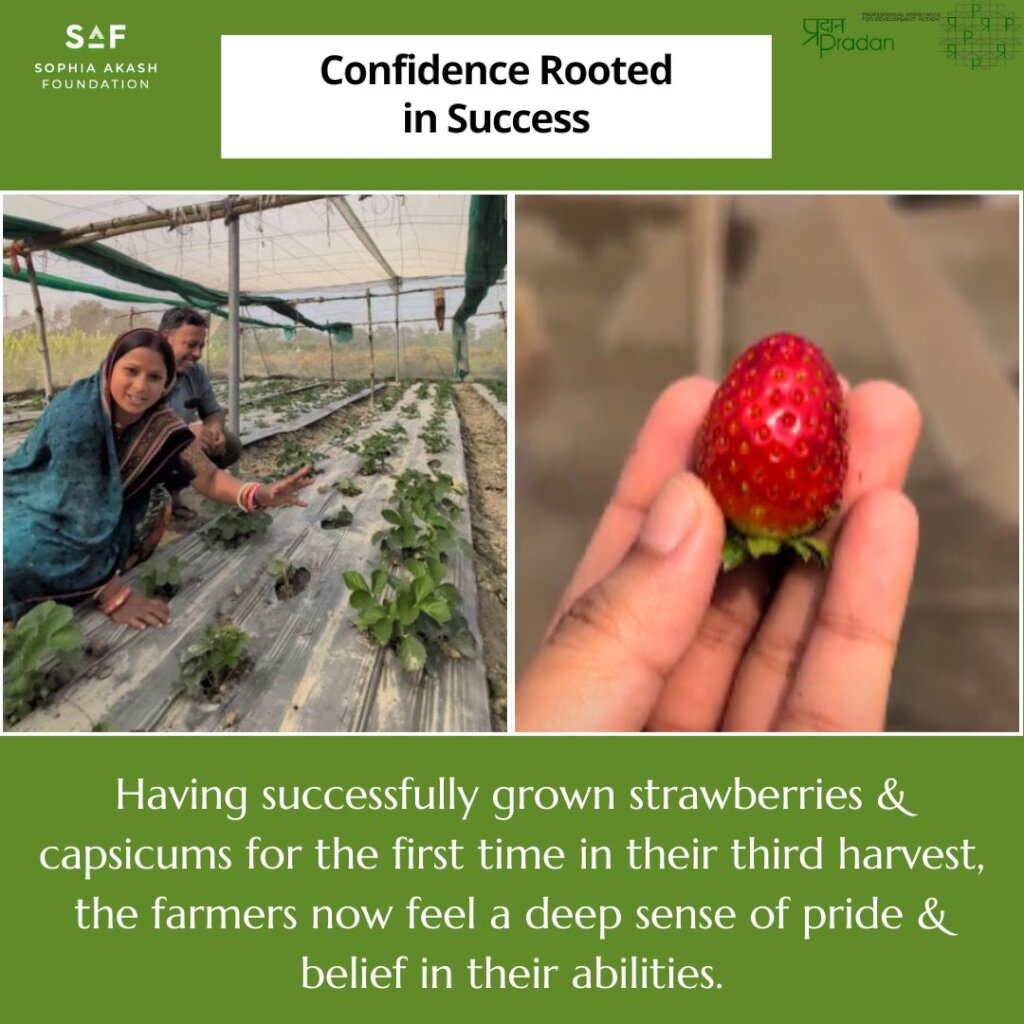 As Kiran Didi recalls: "Growing crops like strawberries and capsicum felt very risky at first. We had no knowledge about them, and in our whole lives we never thought we could grow such crops. But with the learning and support provided, we decided to try. When we saw the results, it gave us the courage to think bigger."