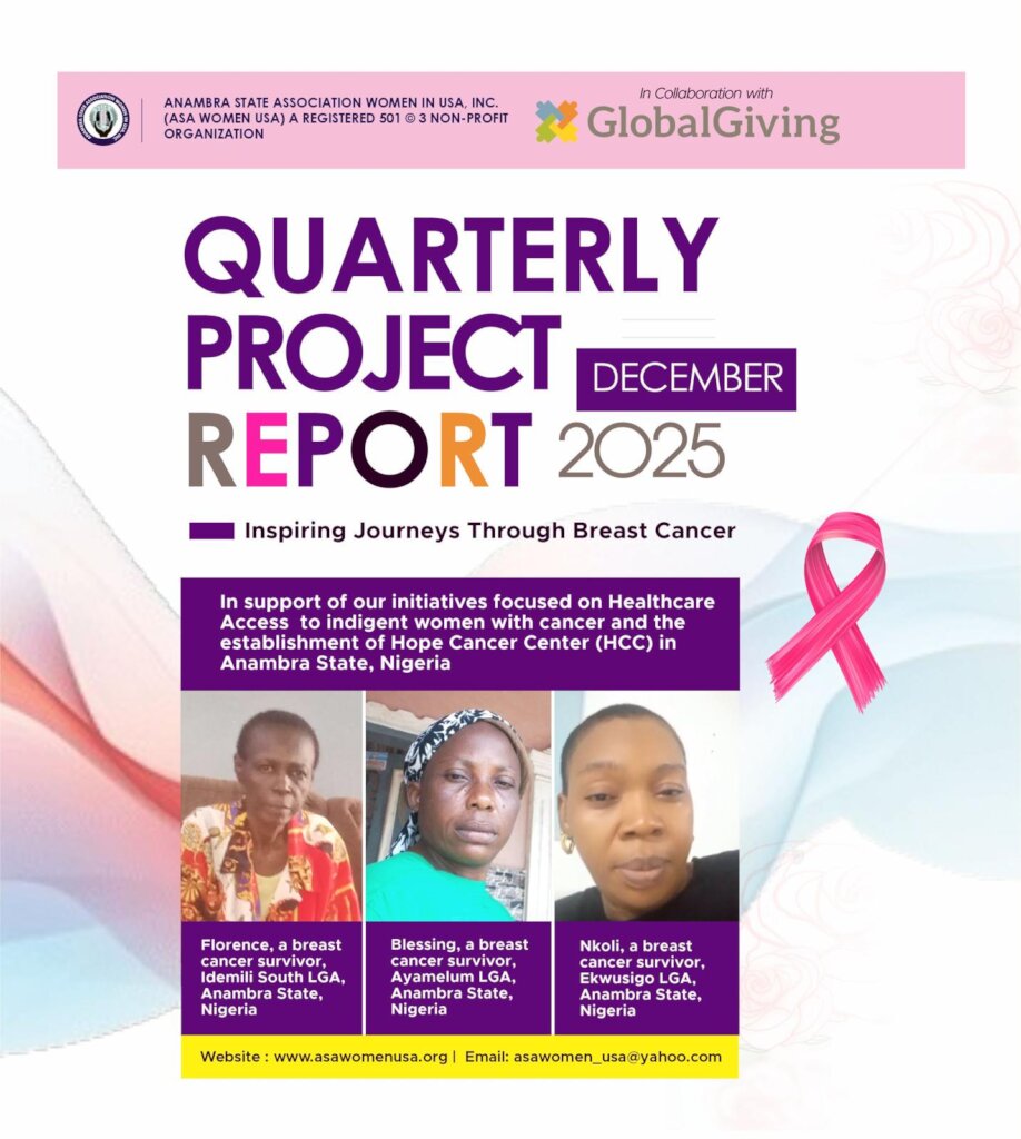 Florence, Blessing, and Nkoli reached out to ASA Women USA, Inc. Cancer Coalition for assistance, underscoring the vital role organizations play in offering help during challenging times. ASA Women USA’s impactful support not only benefits these women but also reflects a broader commitment to enhancing healthcare access and addressing other health issues in Anambra State, Nigeria, with a focus on aiding women in need.