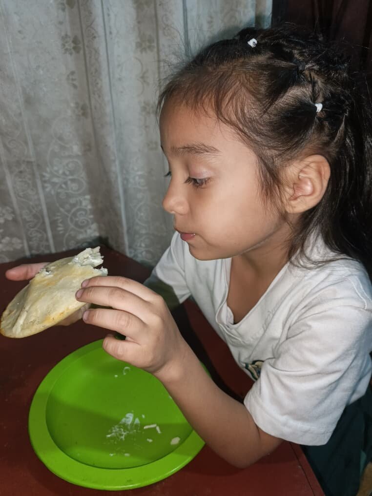 Mayor entusiasmo: Deilymar disfruta de cada desayuno preparado por las cocineras de la escuela.