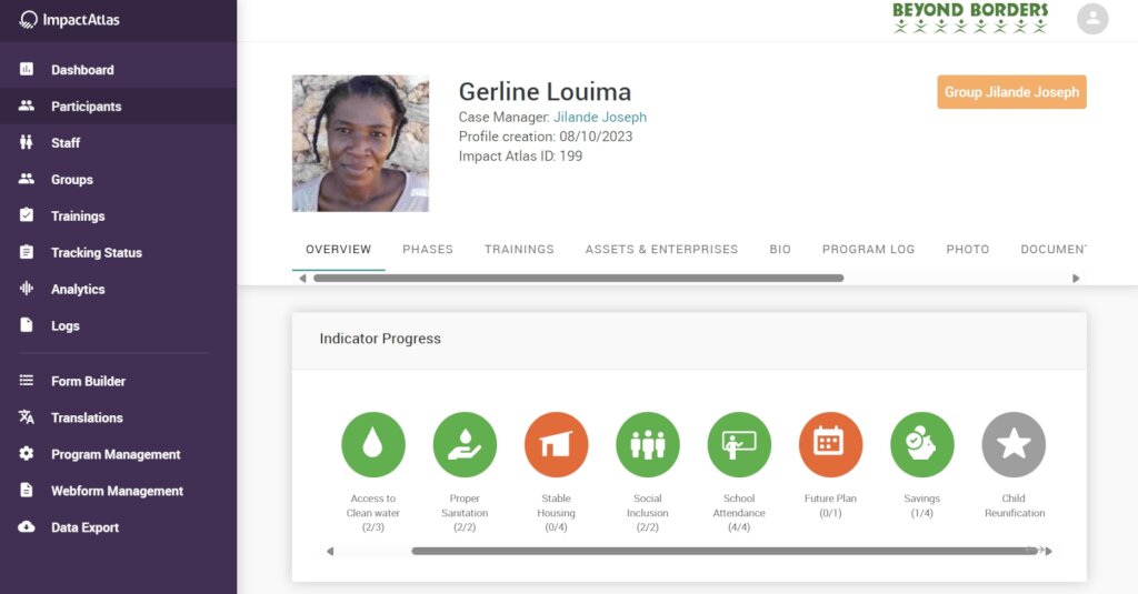 Beyond Borders doesn’t just help families rise—we make sure they stay out of poverty. That’s why we track eight key metrics using a real-time tool called Impact Atlas. Every week, caseworkers update family records with progress, photos, and notes. The metrics include: