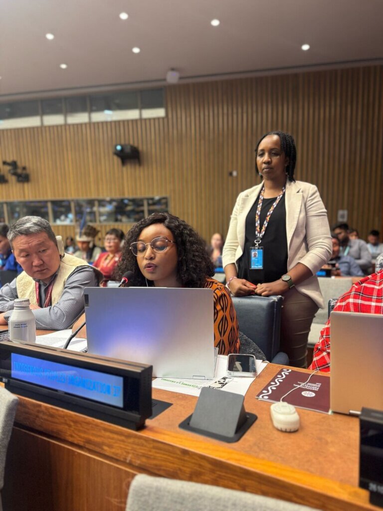 In April 2025, MADRE supported a delegation of four Indigenous Women Climate Defenders from Africa to attend the United Nations Permanent Forum for Indigenous Issues (UNPFII), including two activists from Kenya––Cindy Kobei, chair and founder of the Tirap Youth Trust, and Faith Saning’o, project manager of Indigenous Information Network (IIN).