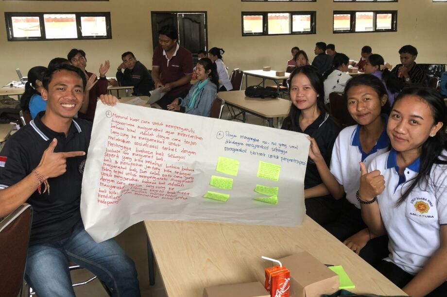 We train young Indonesians in advocacy, leadership, and civic engagement - in their local languages. Youth attend workshops to build capacity and participate in issue-specific online competitions to vet their ideas. We facilitate policy dialogues connecting young people with government officials to co-create solutions that improve the lives and well-being of young people. We evaluate and document outcomes, building evidence that demonstrates why youth inclusion strengthens governance nationwide.