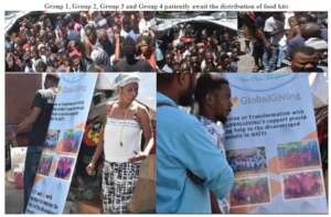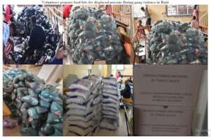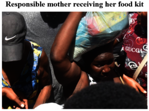 Food kit (15 lbs rice, 2 spaghetti, 5lbs raw sugar, 5 lbs beans, 2lbs of local salt, 1 liter cooking oil, 2 salmon, 3 hareng saur) per family