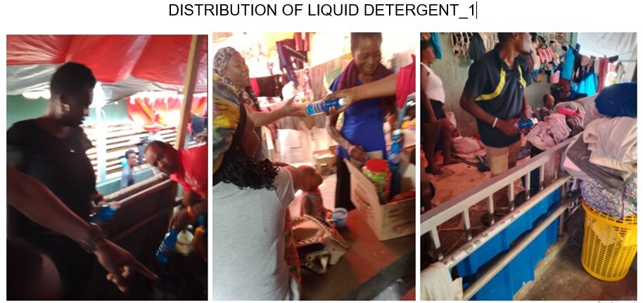 In support of water distribution, liquid detergent (Apollo) was also provided to families.