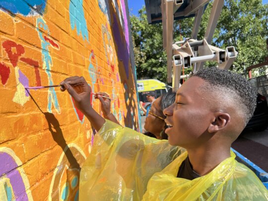 The collaborative process encouraged teamwork, creativity, and a strong sense of ownership, as students worked together to bring their visions to life through painting. Their contributions form a meaningful part of the larger mural, which celebrates community, imagination, and youth voices.