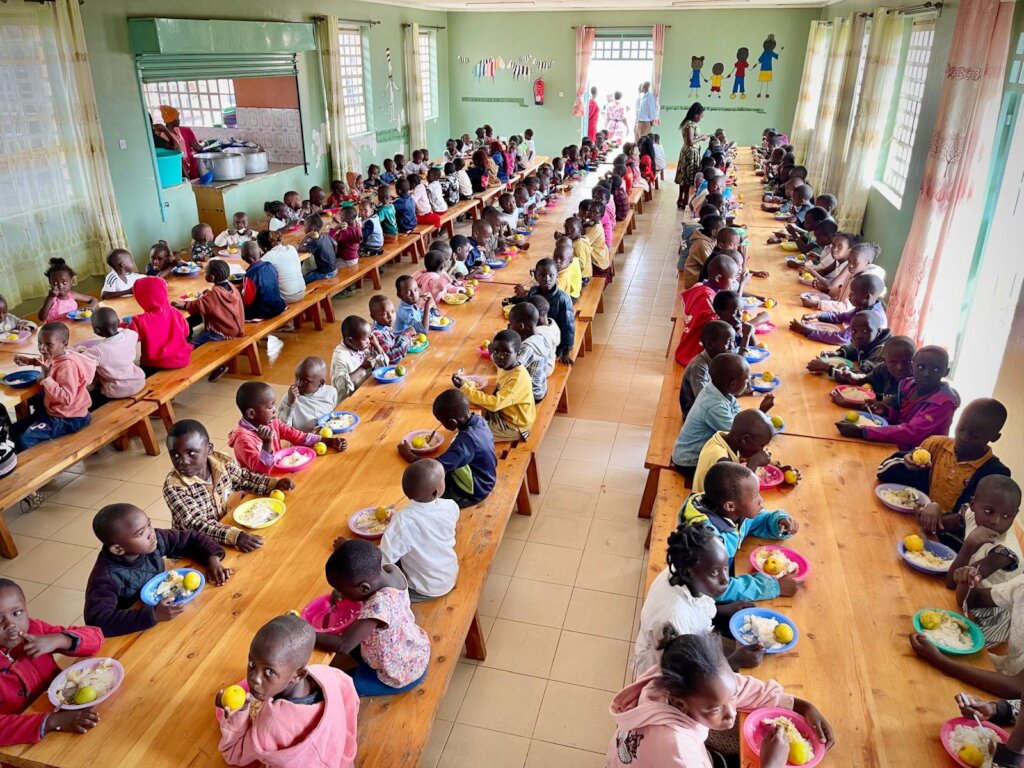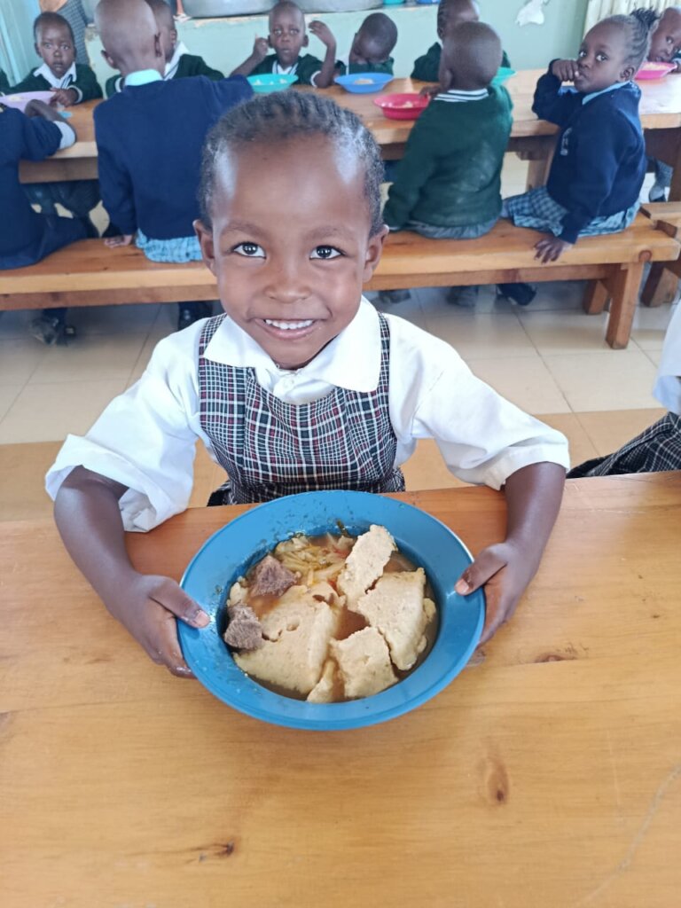 Meals are cooked fresh daily in our modern on-site kitchen by a team of a trained cook and mamas who begin preparing food at sunrise. The dining hall, bright and welcoming, is a place of joy—full of chatter, laughter, and the delicious aroma of nourishment.