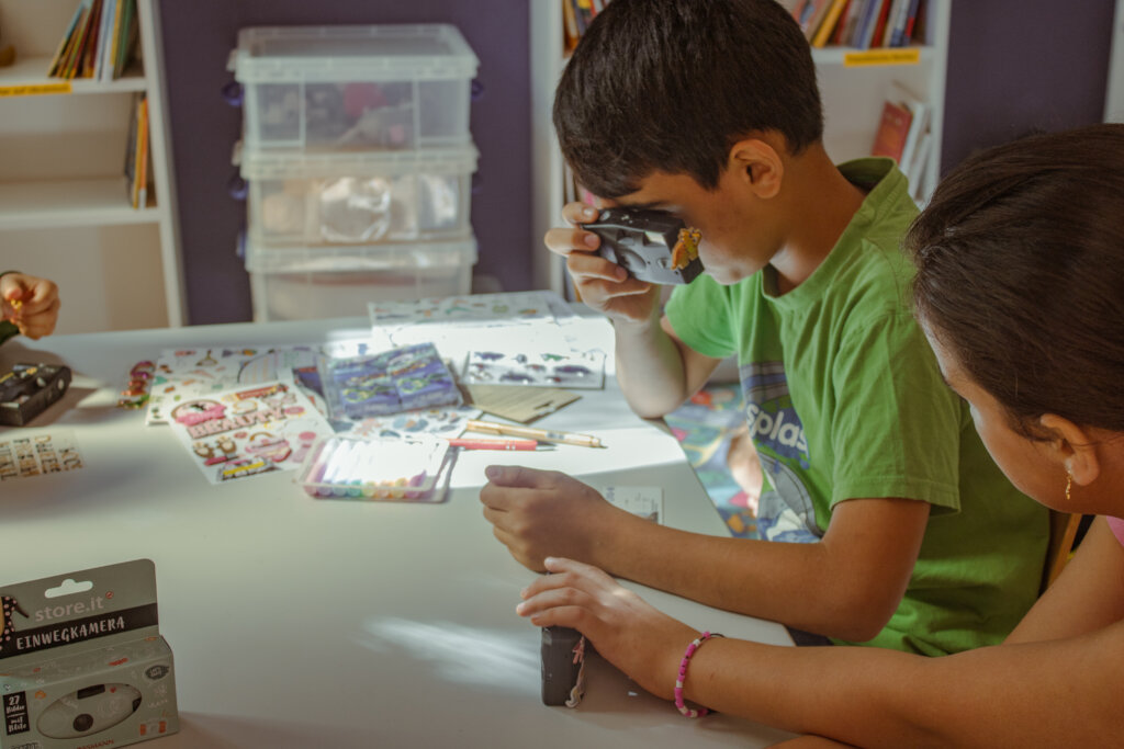 At our library in the refugee accommodation Warschauer Platz, children took part in a photography workshop led by photographer Nour and co-facilitator Seyed. The sessions explored light, framing, and perspective and culminated in a lovely public exhibition of the children's own work at SPORE gallery. Seeing their art on display gave the children a sense of pride and presence that will stay with them long after the photos are taken down.