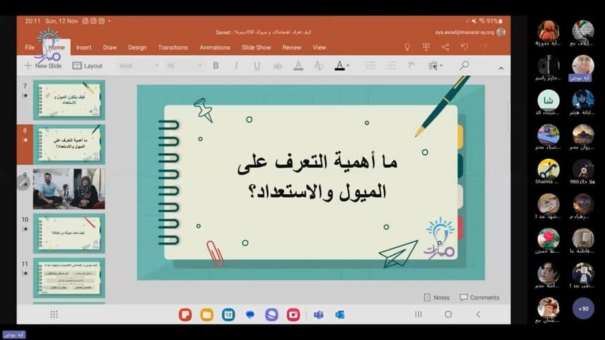 Siham chose to specialize in the field of psychological counseling, recognizing the importance of understanding the human psyche and how to interact with it. Today, she returned to us, offering advice and guidance to her new peers in Masarat initiative, thus continuing her journey of inspiration and humanity that she gained from you.