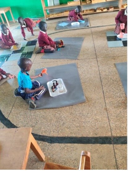 Denzel K currently guides 25 children, with admissions still ongoing. One of the main challenges in his classroom is the frequent repairs and replacement of Montessori materials. Another challenge relates to parent expectations, as many expect children to begin writing immediately. Denzel K has been actively engaging parents to explain child development and how this is supported through Montessori education, helping them understand that coordination of movement and foundational activities must come before writing. Mentorship has supported him in talking to parents as well as in his confidence as a teacher.