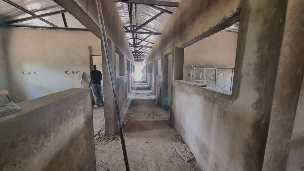 Progress on the Mwandi Hospital's new laboratory facility has moved quickly since our last report. Interior walls have been constructed and plastered. Window and door openings are being measured, and installations of these fixtures will follow soon. Electrical wiring is in progress, and the Terrazzo floor team will begin laying the floors in the near future. In addition, a subcontractor recently completed measurements for all laboratory cabinet countertops. These countertops will be prepared off-site and installed after completion of the Terrazzo floors. Most pictures attached to this report were taken during the last week and illustrate the impressive progress that has been made on the building's interiors. The pictures show: