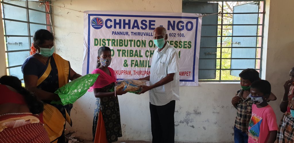In this critical juncture, we also donate monthly groceries sponsorship which is very essential for poor senior citizens and disable persons. Once a month we discuss with community leaders in rural areas to identify the real situation and family background of the old age women to provide monthly food provisions. Such 78 old age people age group between 60 to 90 years in Kadambathur block, identified and sponsoring monthly groceries including Taar Dhal, Tamarind, lentils, Sona Masoori Rice, species, bathing & detergent soaps, hair oil, cooking oil, ground nuts, upma ravva, Ata, seasonal fresh fruits, vegetables, biscuits, etc. First of every month we procure all the material and go to village and serve them with all necessary food provisions, other materials and COVID-19 relief hygiene, sanitation kits.